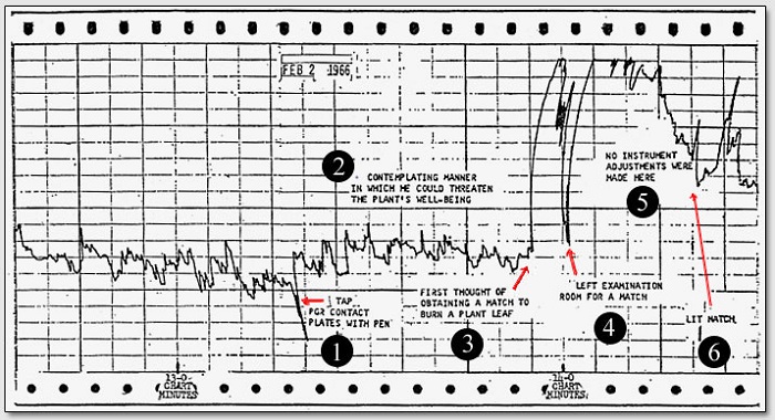 На волне успеха мистера Бекстера во всем мире люди разных мастей начали изучать растения. Однажды к Бекстеру приехал другой ученый, который заявил, что его подопытные цветы никак не реагируют на раздражители. Так и было – цветы ни на что не реагировали. Но, как только коллега удалился из лаборатории, то цветы стали «подавать признаки жизни». В последствии выяснилось, что ученый в своих экспериментах «издевался» над растениями и причинял им боль. Именно поэтому они в его присутствии, как бы впадали в спячку и никак ни на что не реагировали, а как только он отходил от них – цветы оживали.