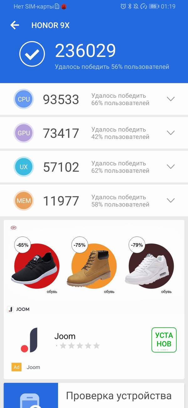 - Kirin 810 - максимальный нагрев корпуса Honor 9x составил 42 градуса по Цельсию;